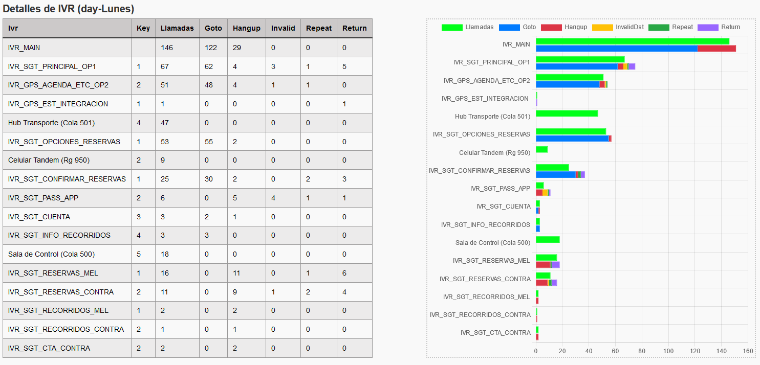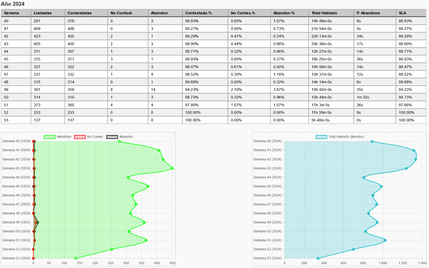 Comparativo de llamadas entre el mes actual y el mes anterior.