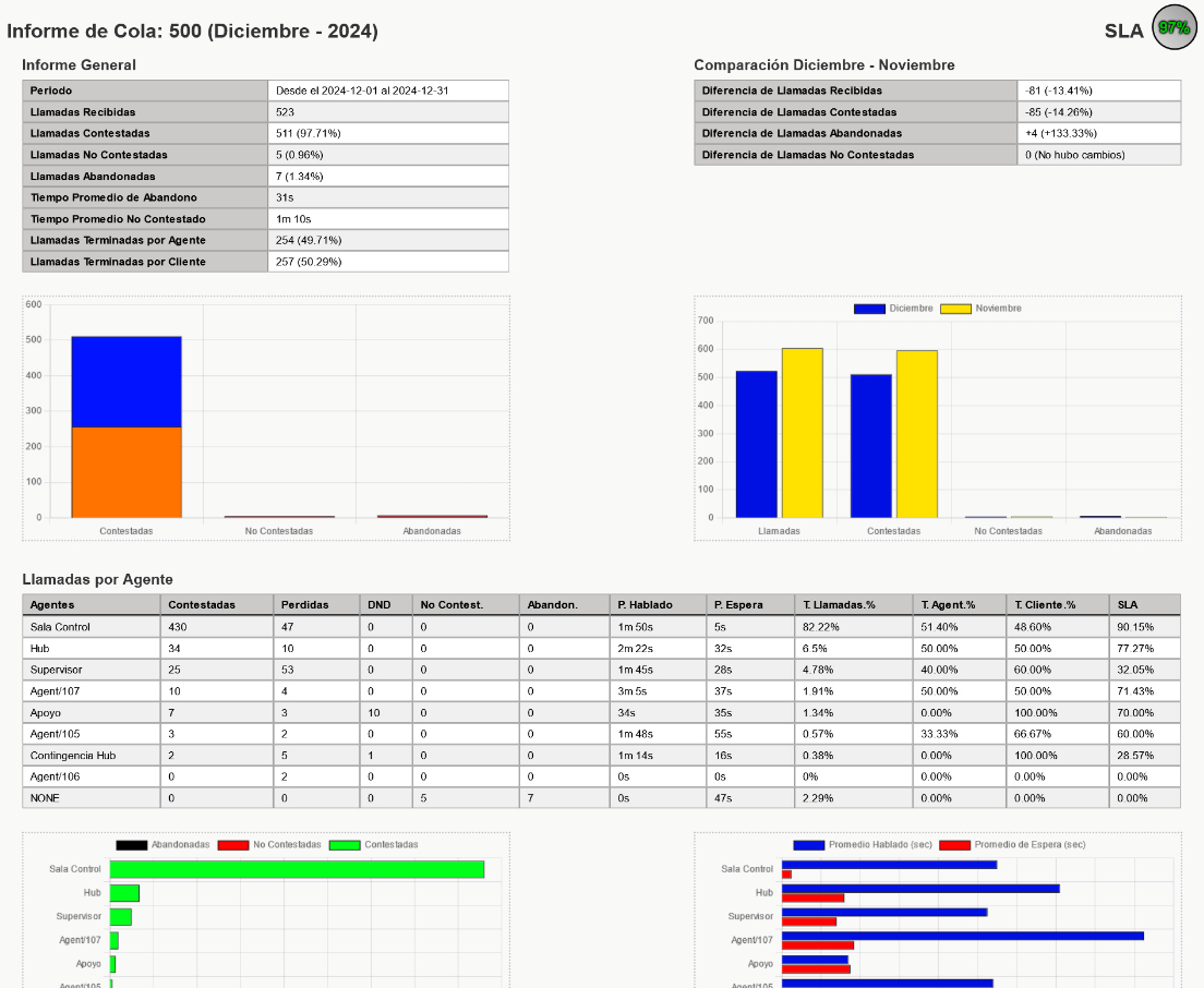 Este reporte PDF proporciona un análisis detallado del rendimiento de tus colas de atención. Incluye: